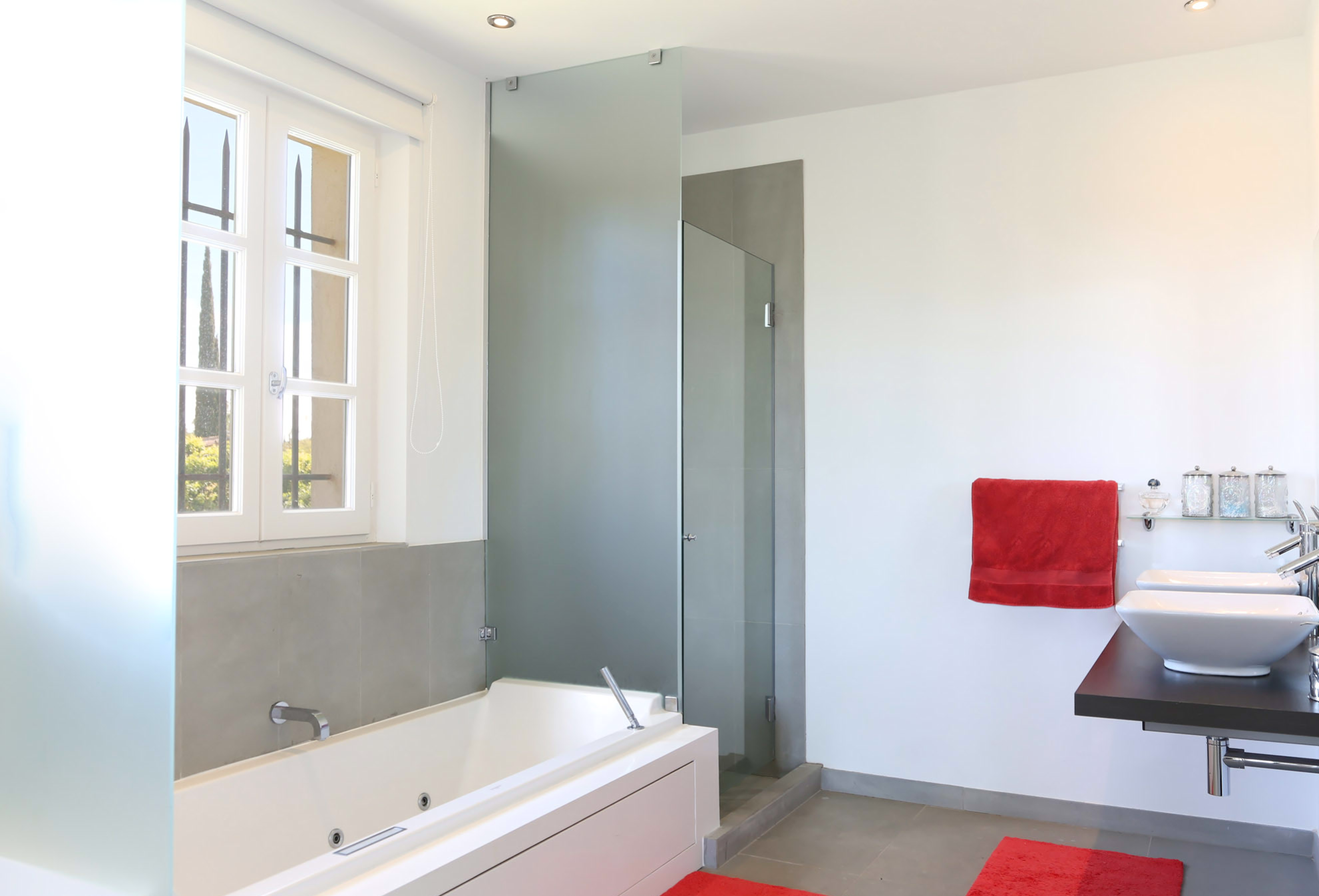 Au rez-de-chaussée deux chambres indépendantes dont une chambre invité VIP avec portes fenêtres dressing, TV écran plat, baignoire ronde Stark et WC séparé.