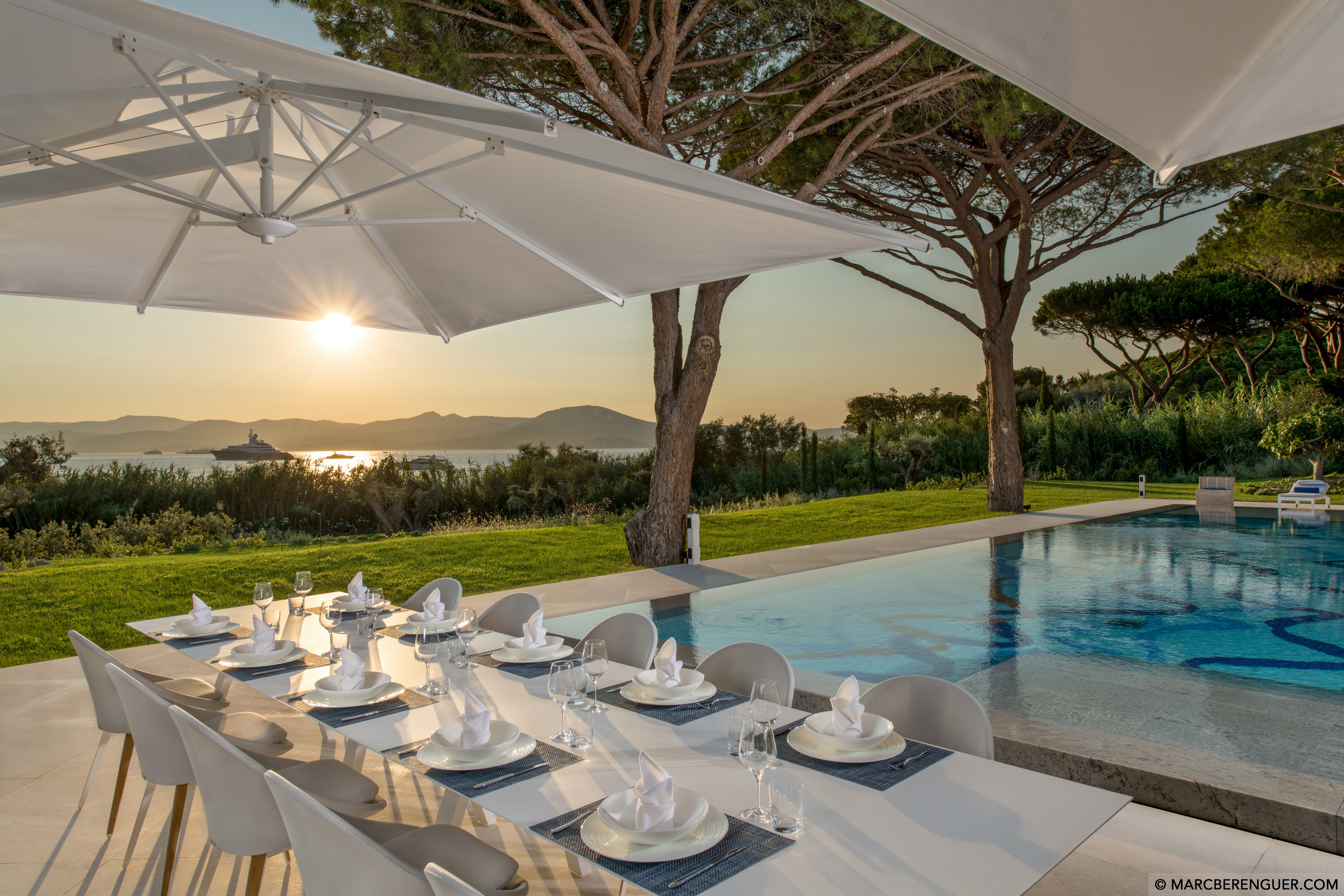 Adjacent to the residence of Brigitte Bardot, the actress who transformed St-Tropez to the glittering jet-set destination of today, Villa Canoubwest is located in an extremely private residential area of St Tropez. Tucked away on a quiet, private cul-de-sac, the other side of the peninsula from the popular Pampelonne Beach, this magnificent villa is a moment’s stroll from the endearing waters of the picturesque Baie de Canebier. The perfect bay to moor your boat and enjoy an enchanting stretch of beach with its powdery sand and soothing umbrella pines.