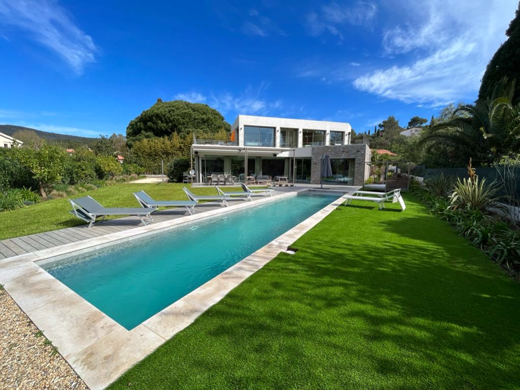 Located in the town of La Croix-Valmer, near the Landing beaches, this magnificent building has a unique and popular location. Newly built in a secure residence made up of around twenty homes, the property is only accessible after passing through a gate serving only 2 aisles
