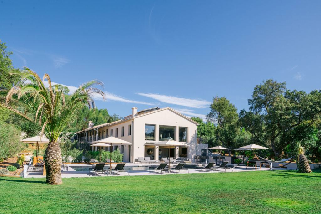 surrounding by a beautiful private garden,a heated pool with a pool house and outdoor brasero.